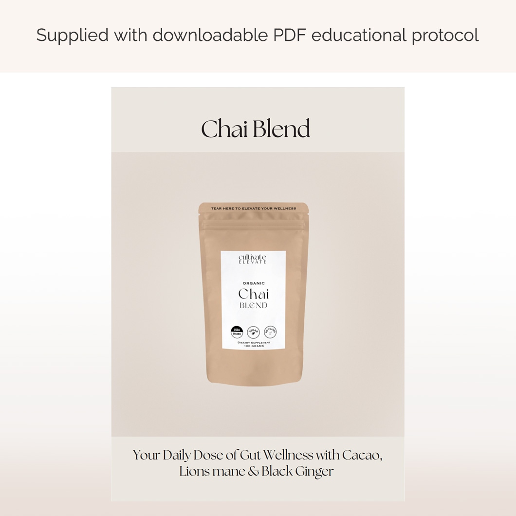 Our Chai blend is the ultimate blend to add to your morning coffee, smoothie, or tea. This superfood blend has a sweet cocoa aroma with a kick of spice.