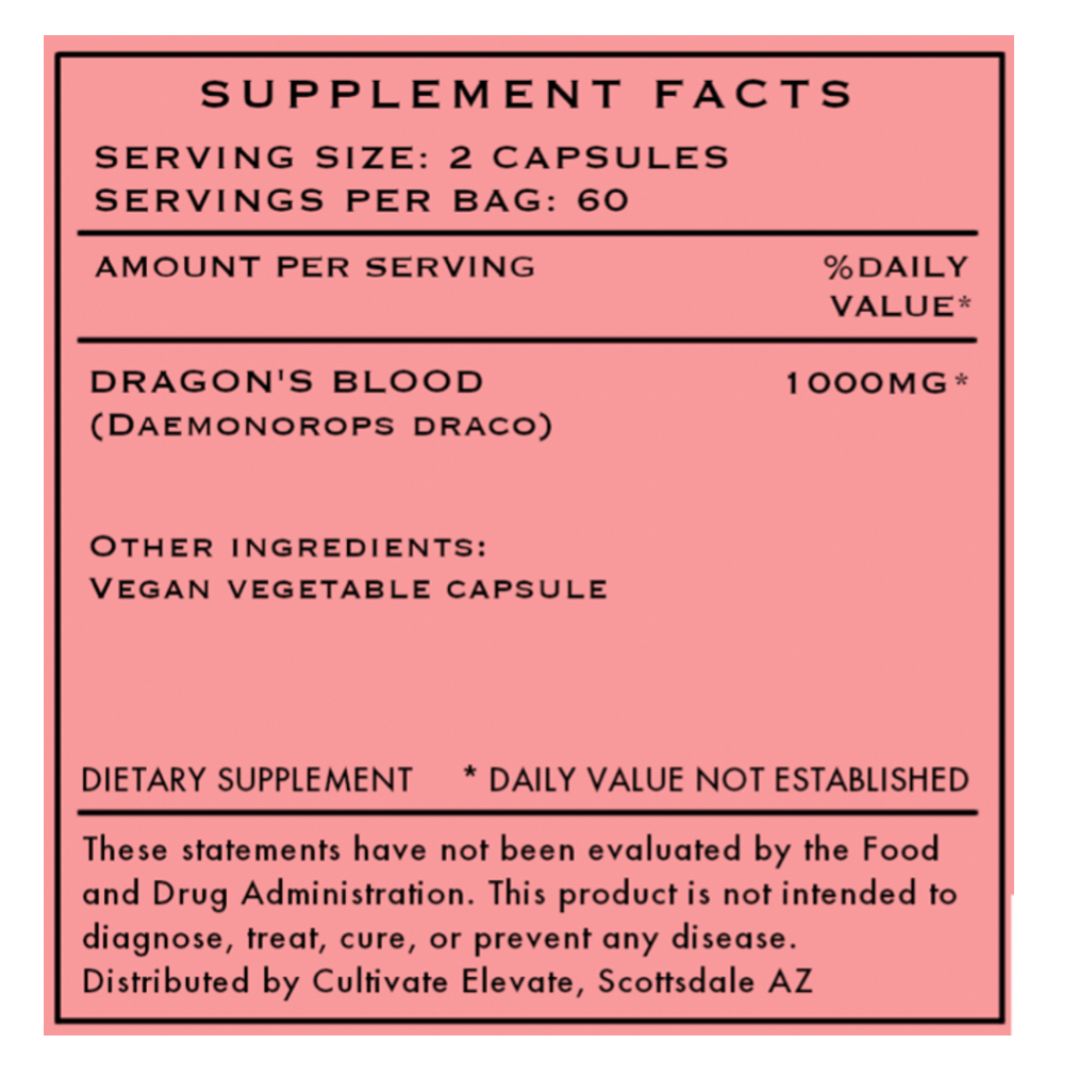 Dragon’s blood is a powerful superfood that can be taken at any time during the day. 1-2 capsules daily is recommended. This ancient magical tree is very high in antioxidants and is a great blood tonic.