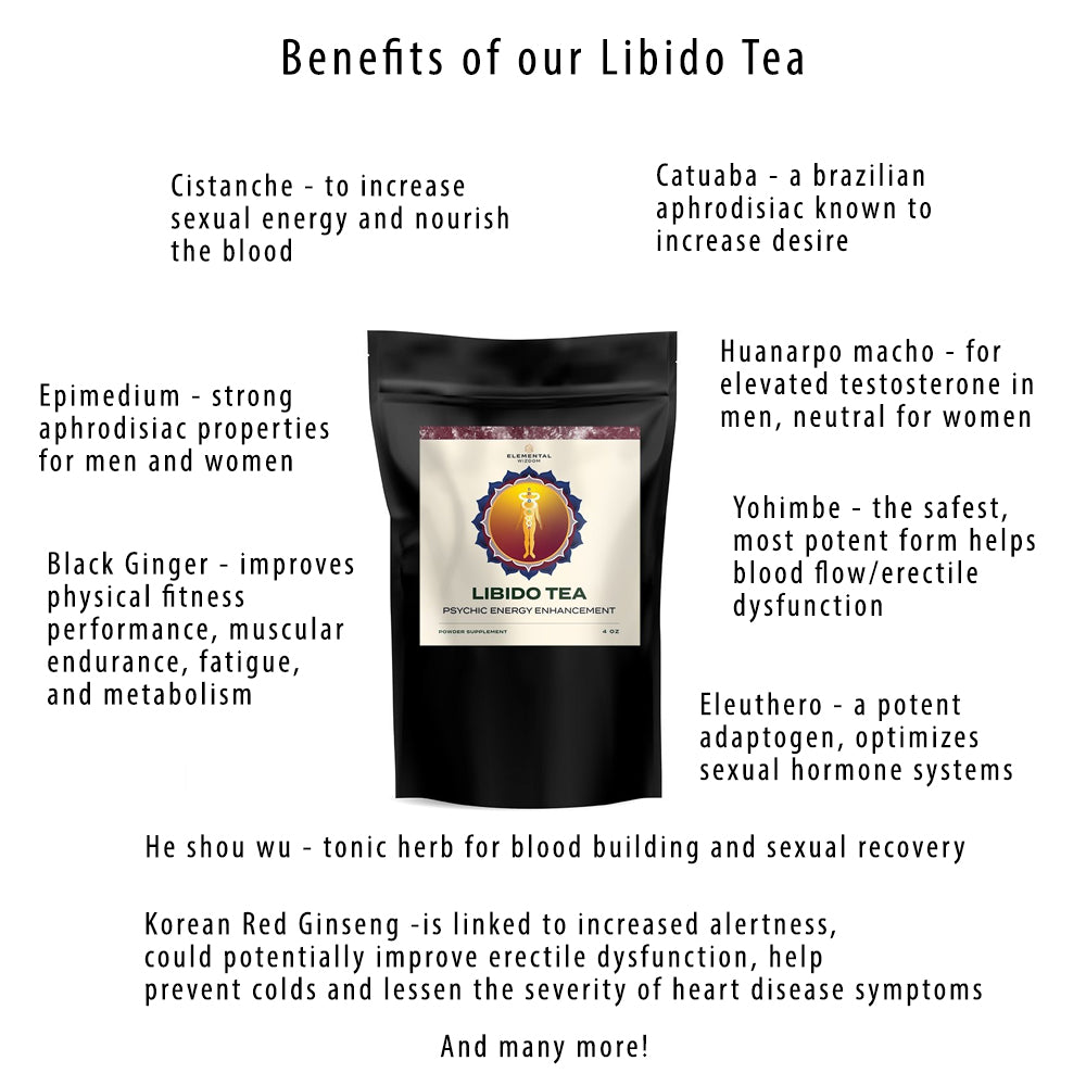 Elemental Wizdom’s Libido Tea is quite possibly the most potent natural libido enhancer ever created. Based on multi-thousand-year medicinal practices and multiple ancient traditions—Libido Tea includes proven extracts never before combined in a single recipe.