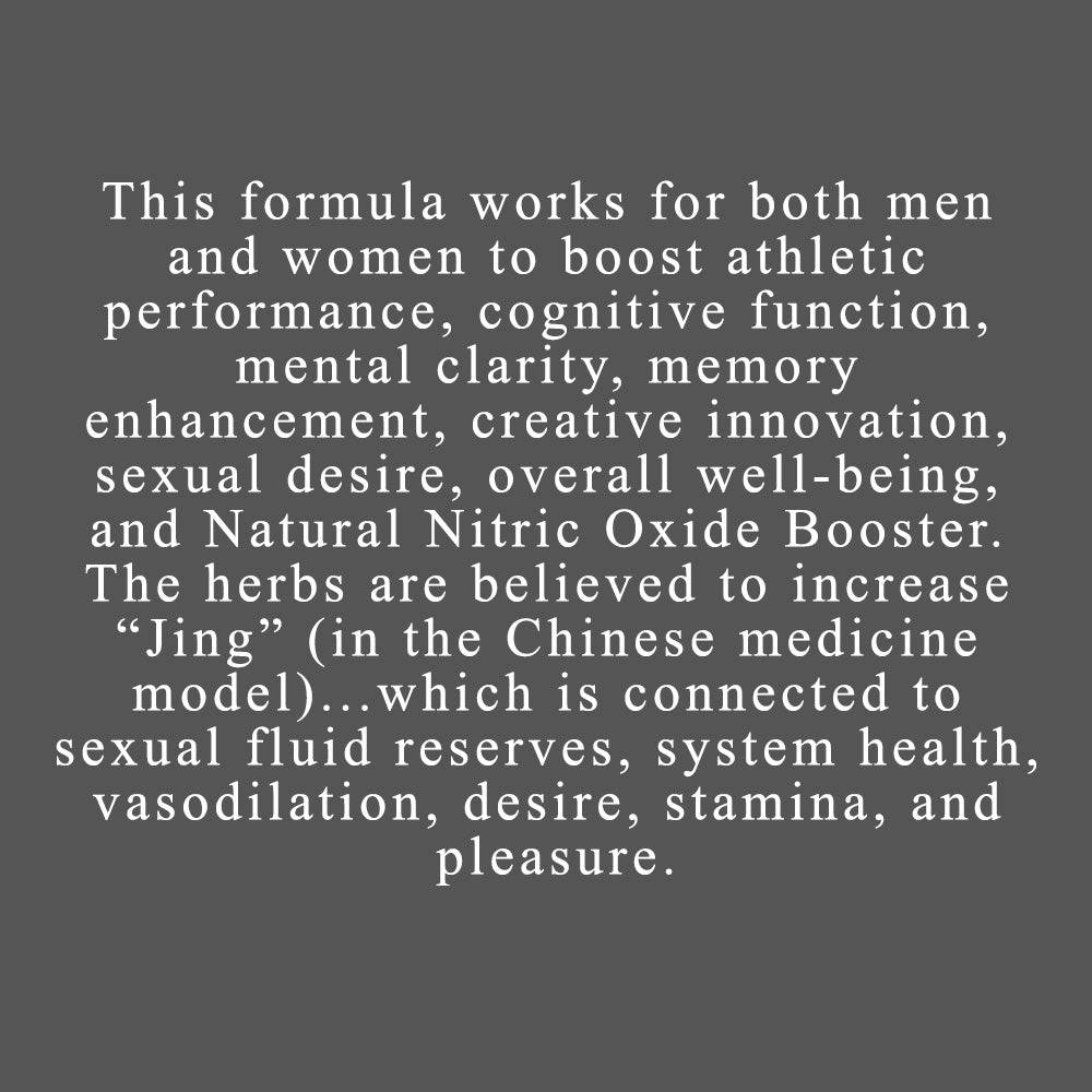 The herbs are believed to increase “Jing” (in the Chinese medicine model)... which is connected to sexual fluid reserves, system health, vasodilation, desire, stamina, and pleasure.