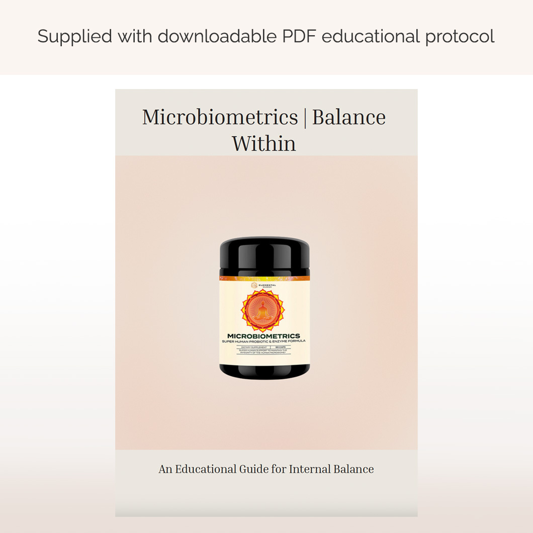Elemental Wizdom's Microbiometrics: an effective blend of prebiotics, probiotics, and enzymes for intestinal balance.