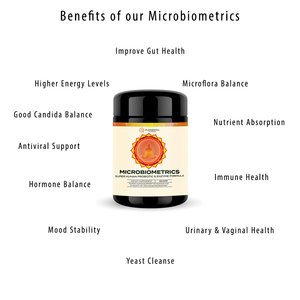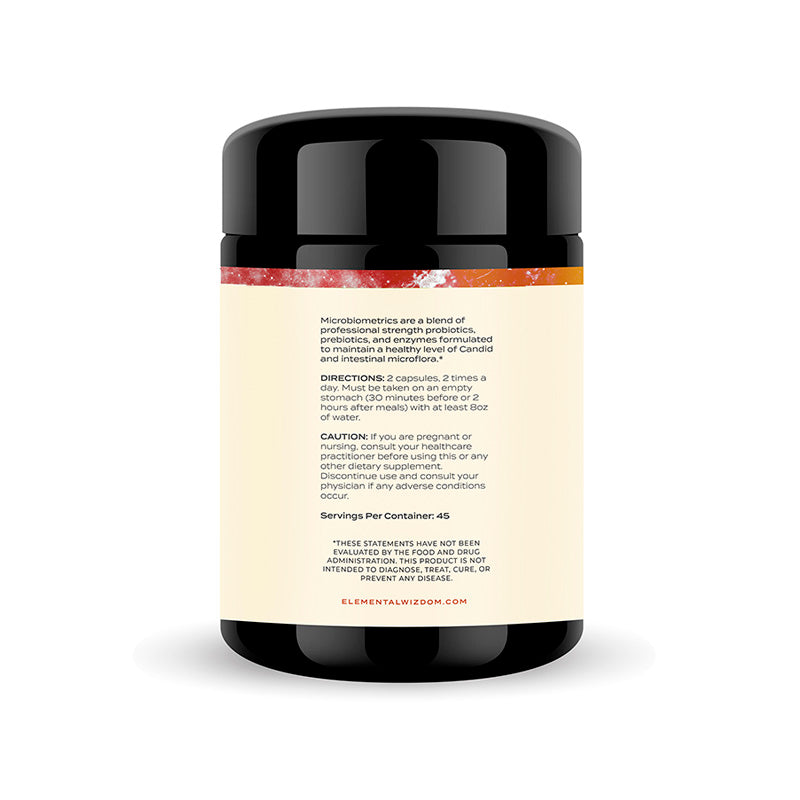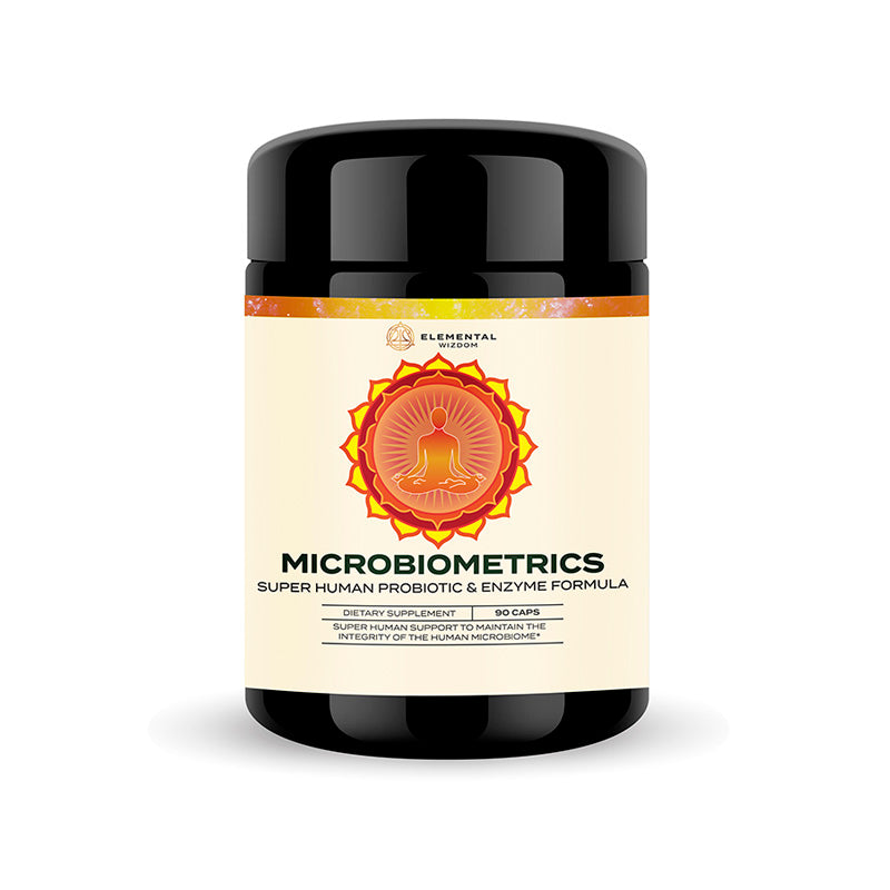 Elemental Wizdom's Microbiometrics: an effective blend of prebiotics, probiotics, and enzymes for intestinal balance.